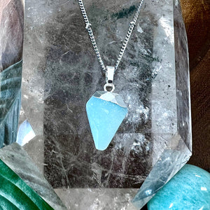 Faceted Shield Amazonite Minimalist Crystal Pendant 14” + 2" White Gold Necklace