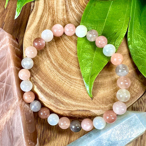 Rainbow Moonstone, Peach Moonstone, Black Moonstone & Sunstone Quad Power TOTAL Bliss 8mm Stretch Bracelet