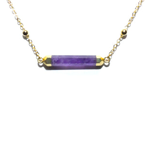 • Minimalist Amethyst Rounded Bar Pendant Choker 14" + 2" Gold Necklace