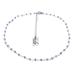 • Minimalist Sterling Silver Amethyst Beaded Rosary Chain Wire Wrapped Choker 12" + 2" Necklace