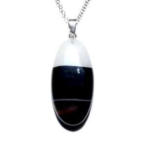 Simple & Polished Black Lace Agate Crystal Pendant 18” White Gold Necklace