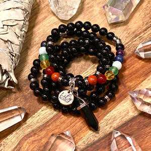 Limited Edition Chakra Balancing Black Onyx Spiritual Warrior Strength Rainbow 108 Mala Necklace Bracelet