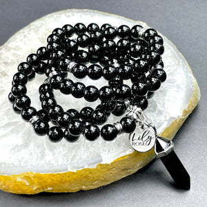 Black Onyx Spiritual Warrior Strength 108 Stretch Mala Necklace Bracelet