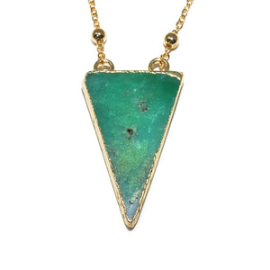 Dynamic Triangle Chrysoprase Double Sided Pendant 18” Gold Necklace