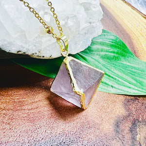 Harmonizing Fluorite Natural Cube Pyramid Pendant 30” Gold Necklace  - Regular price