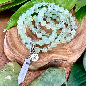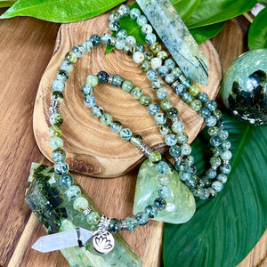 Last 2! Super Limited - Prehnite with Epidote & Black Tourmaline Grade A Prophecy & Magic 108 Mala Necklace Bracelet