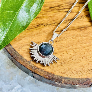 Labradorite Ray of Light Sunburst Inner Magic Sun Pendant 18” Gold Necklace