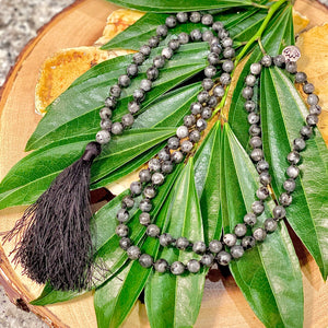 Labradorite Larvakite Power Protector Shaman Stone 108 Hand Knotted Mala Necklace Bracelet