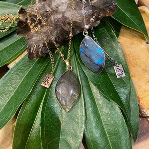 Last 1! Labradorite Shaman Stone Double Pointed Pyramid Pendant 18” Gold Necklace