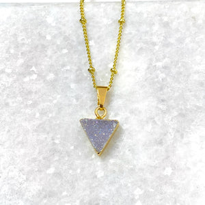 Aura Quartz Druzy Minimalist Triangle Energy Gemstone Pendant 18" Gold Necklace