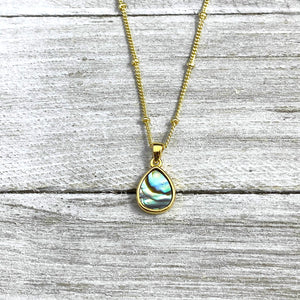 Last One! Abalone Minimalist Teardrop Soothing Pendant 18” Gold Necklace
