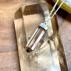 Smoky Citrine Purification & Invisibility Cloak Full Tower Point Pendant 18" Gold Necklace