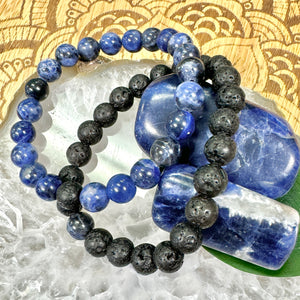 Lava Stone & Sodalite Matching Couples Unity & Love 8mm Stretch Distance Bracelets