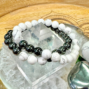 Magnetic Hematite & Howlite ✨ Law of 3 Matching Gemstone Couples Unity & Love 8mm Stretch Distance Bracelets