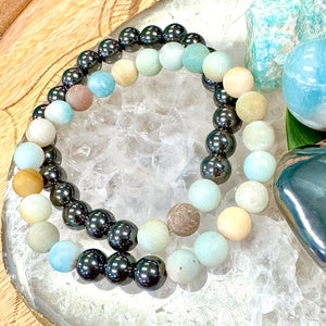 Magnetic Hematite & Matte Amazonite ✨ Law of 3 Matching Gemstone Couples Unity & Love 8mm Stretch Distance Bracelets