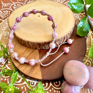 NEW! Rhodonite Emotional Stability, Forgiveness & Self Love Woven Inner Strength Collection Nylon Braided Adjustable 6mm Bead Bracelet