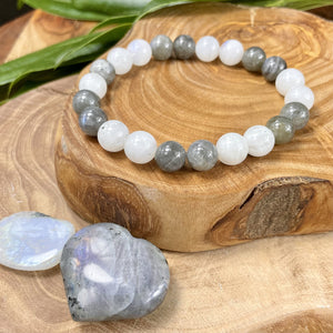 Rainbow Moonstone Labradorite Duo Illumination of Light Premium Collection 10mm Stretch Bracelet