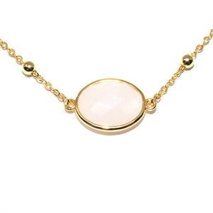 Faceted Gemstone Oval Rose Quartz Pendant Choker 14" + 2" Gold Necklace