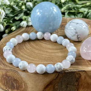 Triple Power Aquamarine Howlite Rose Quartz Love Frequency 8mm Stretch Bracelet