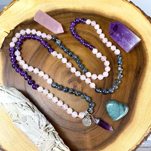 Limited Edition Triple Power Labradorite, Amethyst, Rose Quartz 108 Mala Necklace Bracelet