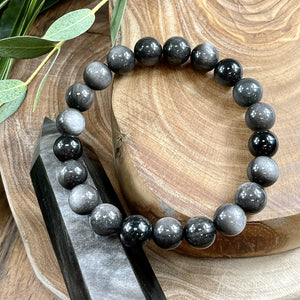 Silver Sheen Obsidian Shamanic Journey 10mm Stretch Bracelet